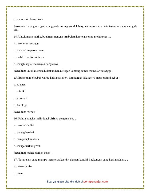 50 Soal Ipa Adaptasi Makhluk Hidup Jawaban Pilgan Essay