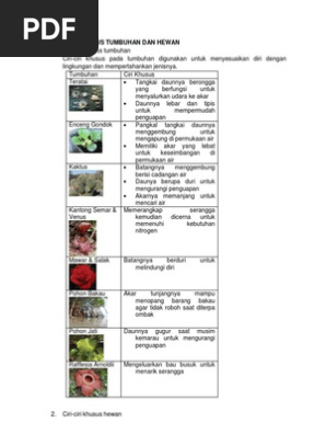 Ipa Sd Kelas 6 Bab Ciri Khusus Tumbuhan Hewan